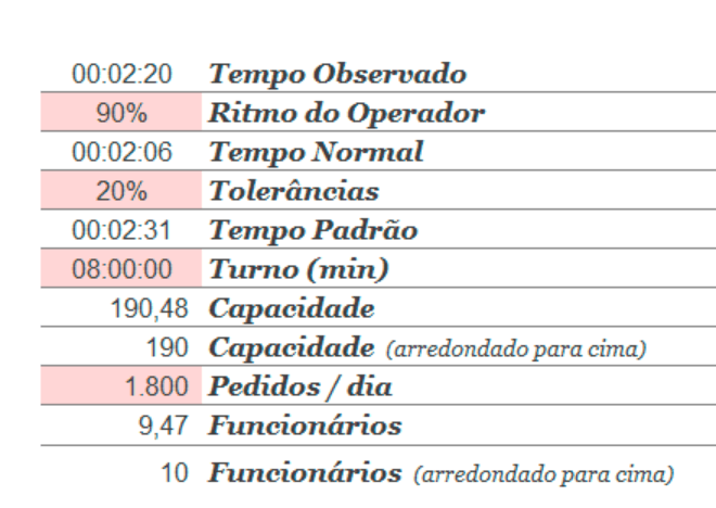 Com isso, chegamos à capacidade produtiva de pedidos e na quantidade de funcionários necessários para atender a demanda do dia.